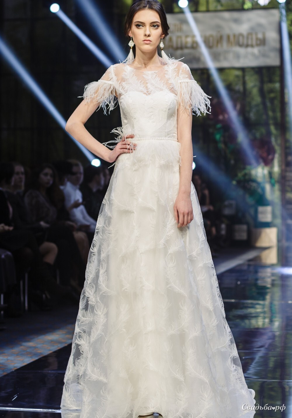 Свадебное платье,новое,дизайнерское. Декор из перьев.