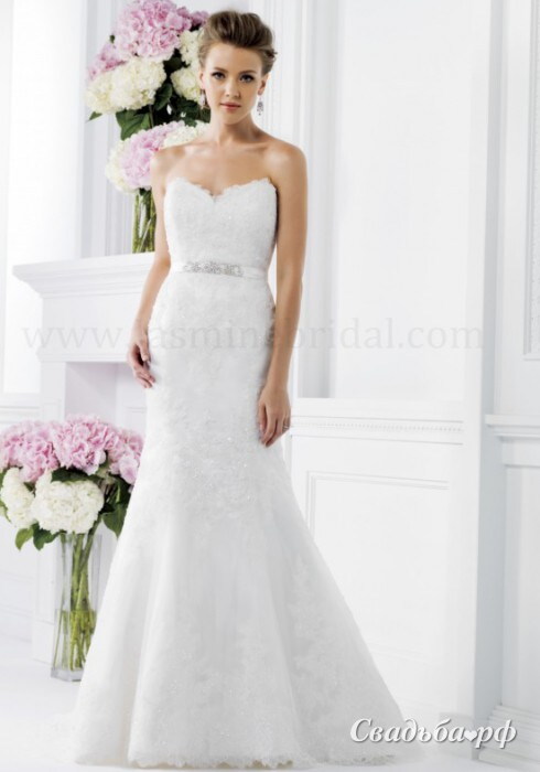 Элегантное платье приталенного А-силуэта подчеркнет все достоинства Вашей фигуры. Нежное декольте сердечком как нельзя выгодно акцентирует линию груди. Цветочные аппликации из кружева придают образу торжественности и неподражаемого шика. Почувствуйте себя настоящей королевой в этом изысканном наряде.
