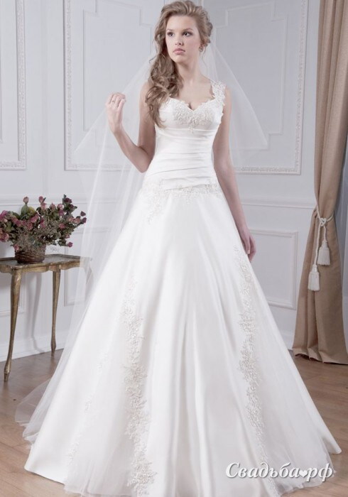 Нежный свадебный наряд от именитого бренда Nava Bride эффектно подчёркивает зону декольте и бюст. Ажурные бретели и тонкая вышивка ручной работы придают образу романтичность и невинность. Корсет слегка присборен на талии. Длинная юбка расширяется к полу. Подол также украшен тонкой вышивкой. Покоряйте с первого взгляда!