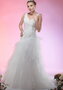 Очаровательное свадебное платье от американского бренда To be Bride может похвастаться расшитым вручную корсетом. V-образный вырез на груди обрамлён изящными бретелями. Заниженный корсаж идеально садится по фигурке и выгодно подчёркивает фигуру. Пышная юбка с лёгкими воланами-перьями из полупрозрачной ткани переходит в небольшой шлейф.