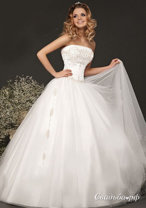 Безупречно белое свадебное платье от известного американского бренда To be Bride идеально подчеркнёт Ваш бюст и талию. Корсет украшен сверкающей вышивкой ручной работы. Пышная юбка с верхним слоем из полупрозрачной ткани напоминает лёгкое облако. Почувствовать себя прекрасной королевой теперь проще простого! Покорите всех окружающих!