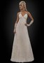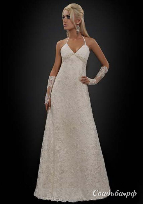 Истинным ценительницам стиля и лаконичности придётся по душе это свадебное платье с открытой зоной декольте и тончайшими бретелями. Бюст подчёркнут вышивкой ручной работы. Наряд нежно подчёркивает женственные изгибы фигуры. Длинная юбка струится до пола. Платье по всей длине украшено ажурными вставками. Идеальный выбор юных чаровниц!