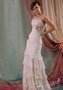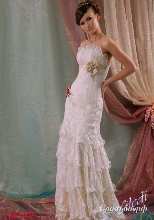 Изысканное свадебное платье прямого кроя в ретро-стиле. Представленная модель ненавязчиво войдет в гармонию с вашим очарованием и обаянием. Облегающий силуэт подчеркнет женственные и совершенные изгибы фигуры. Основной акцент сделан под грудью - атласный поясок с нежным цветком и блестящими камнями. Юбка украшена несколькими слоями из винтажного кружева.