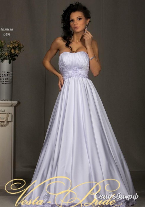 Атласное свадебное платье без излишнего декора – выбор самых притязательных и стильных красавиц. Драпированный корсет с открытой зоной декольте и завышенной талией идеально подчеркнёт Ваш бюст. Длинная юбка со множеством складок струится до самого пола и чуть расширяется. Лаконичный наряд станет изюминкой Вашего незабываемого образа.