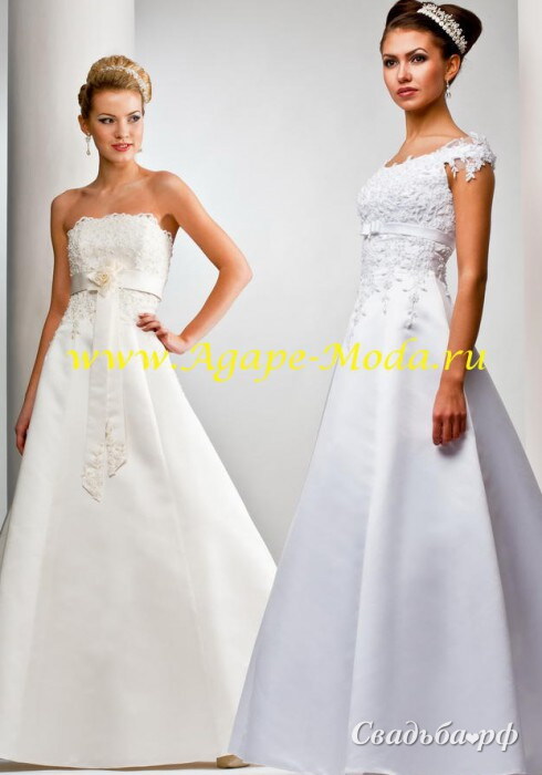 Классическое свадебное платье А-силуэта станет изюминкой Вашего сногсшибательного образа. Открытая зона декольте обрамлена ажурным краем кружевного корсета. Ленточка под грудью акцентирует внимание на бюсте. Кружево словно стекает на верхнюю часть длинной юбки. Представленное платье подчеркнёт женственные изгибы фигуры.