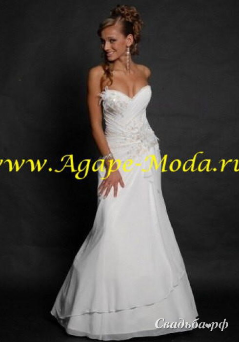 Нежный свадебный наряд с пикантной зоной декольте идеально садится по фигуре и подчёркивает женственные изгибы фигуры. Изящная драпировка и сверкающая вышивка ручной работы гармонично украшают платье. Длинная юбка облегает бёдра и слегка расширяется к полу. Отличный выбор стильных невест, предпочитающих лаконичность и элегантность.