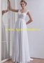 Струящийся свадебный наряд в греческом стиле выполнен из нежного шифона кремового оттенка. Широкие бретели-плечики обрамляют открытую зону декольте. Завышенная талия подчёркнута сверкающим пояском. Драпировка на груди зрительно увеличивает бюст. Длинная юбка свободного кроя доходит до самого пола. Стильно и восхитительно!