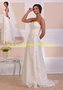 Лаконичный свадебный образ из новейшей коллекции придётся по душе невестам, которые не любят вычурность и пышные юбки. Изящный корсет с открытой зоной декольте и оголённой спинкой подчёркивает талию и бюст. Длинная юбка из тонкого кружева чуть расширяется к полу и переходит в небольшой шлейф. На бедре расположен цветок ручной работы.