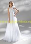 Невероятно лёгкий и струящийся наряд из свежей коллекции 2015 года выполнен в нежном кремовом оттенке. Оригинальная бретель-ожерелье с объёмным декором на одном плече придаёт образу нестандартность. Талия подчёркнута широким поясом. Складочки на груди зрительно увеличивают бюст. Длинная юбка струится до пола и переходит в шлейф.