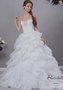 Очаровательное свадебное платье с открытой зоной декольте и сверкающей вышивкой на корсете. Наряд акцентирует внимание на груди. Пышная юбочка с многоярусными воланами из лёгкой ткани переходит в такой же нежный шлейф. Модель понравится невестам, предпочитающим элегантность и минимализм декора. Романтичный образ современной принцессы.