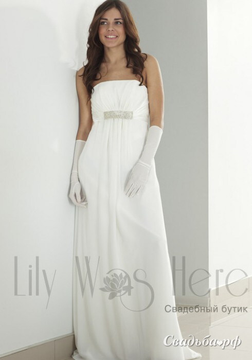 Линия завышенной талии украшена роскошной полоской “бриллиантового плетения” из кристаллов.