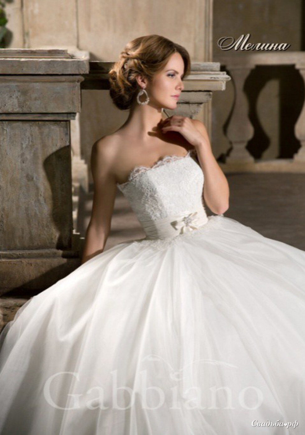 Мелина — великолепный выбор для невесты с романтичным состоянием души! Открытый лиф, искусно украшенный тонким кордовым кружевом, словно окутан в слои воздушного шелка юбки, завораживающего своим мерцанием и невесомостью.