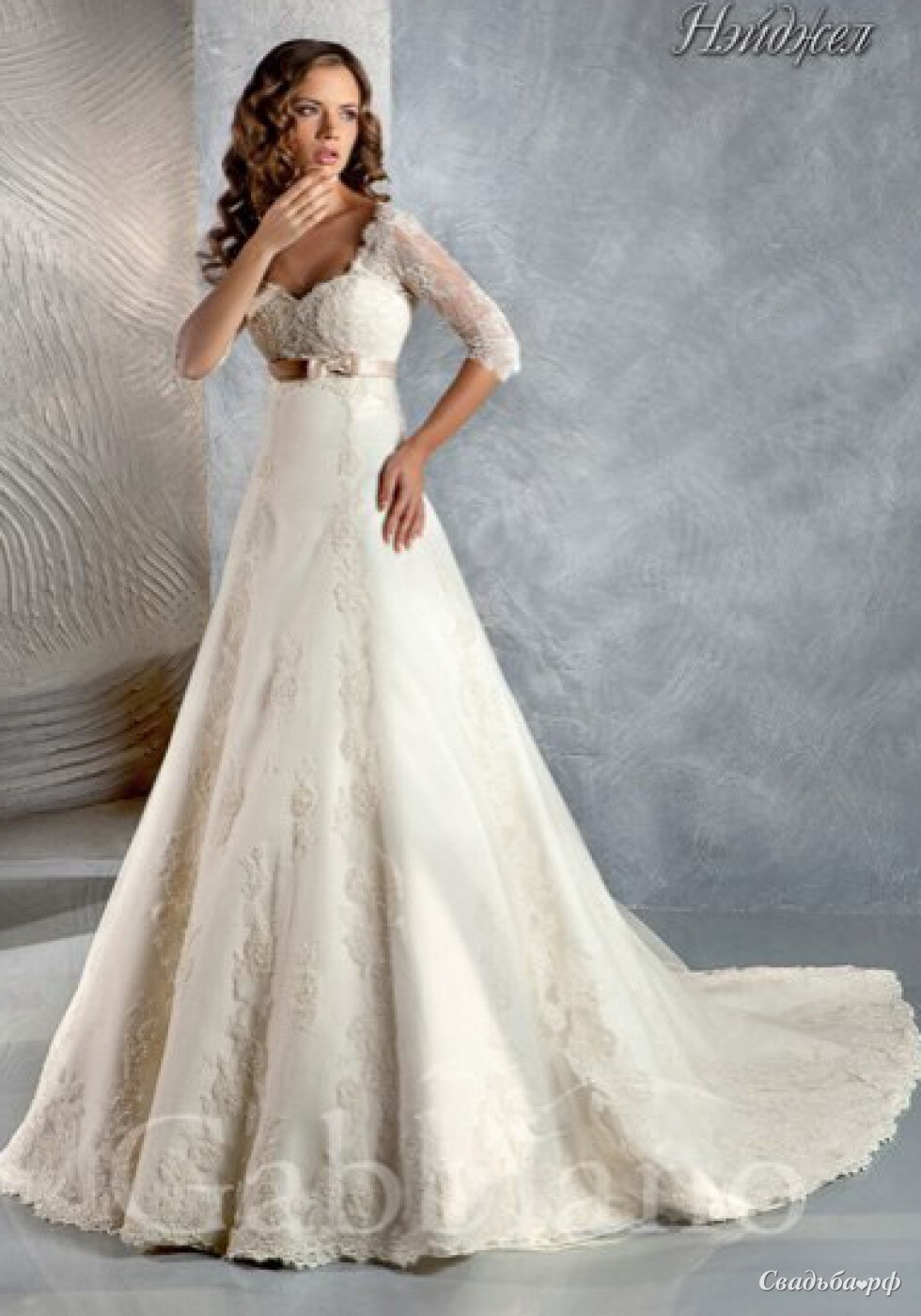 Кроме того, А-силуэт платья, в сочетании с роскошным длинным шлейфом, зрительно сделают невесту выше и придадут величия образу. Тонкий атласный пояс подчеркнет стройность и изящество фигуры, а его контрастность сделает наряд более стильным.