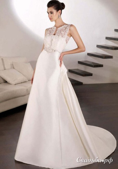 Безупречное свадебное платье от известного бренда Villais понравится самой стильной невесте. Идеально гладкая юбка расширяется к полу и постепенно переходит в шлейф. Миниатюрный корсет с открытой зоной декольте дополнен кружевной драпировкой и такими же вставками на груди. Талия подчёркнута тонким поясом из страз и бисера. Божественный образ.