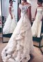 Самым требовательным и смелым невестам придётся по душе это свадебное платье с полупрозрачным верхом и длинными рукавами. Пикантно оголённая спинка и подчёркнутая грудь превратят Вас в центр внимания. Талия подчёркнута золотистым пояском с миниатюрным бантиком. Наряд идеально садится по фигуре и подчёркивает женственные изгибы фигуры.