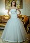 Воздушный свадебный наряд с оголённой зоной декольте и заниженным корсетом подчёркивает бюст и другие женственные изгибы фигуры. Под грудью разместилась лента с миниатюрным бантиком. Нижний край пышной юбки декорирован атласной полосой. Модель достаточно лаконична в декоре, благодаря чему впишется в любой образ невесты.
