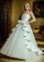 Считаете, что классический А-силуэт – это скучно? Ничего подобного! Представленное свадебное платье с оригинальными воланами станет изюминкой Вашего стильного образа современной невесты. Корсет с пикантно обнажённой зной декольте и лёгкими складками визуально увеличивает бюст. Пышная юбка расширяется к полу и переходит в небольшой шлейф.