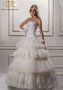 Эффектное платье от известного свадебного бренда Viktoria Karandasheva поможет Вам создать сногсшибательный образ принцессы нашего времени. Декольтированный корсет выполнен из переливающейся ткани. Пышная юбка с множеством ярусов из кружева и фатина придаёт наряду неповторимый шик и роскошь. В таком наряде Вас точно не забудут!