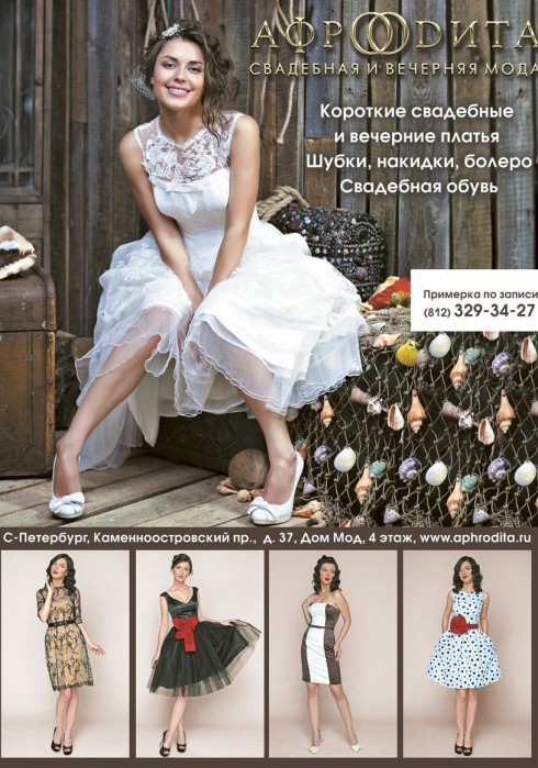 Cвадебный салон "Афродита" открылся в знаменитом петербургском "ДОМе МОД" 1 ноября 1993 года. сегодня наш салон специализируется на свадебных платьях больших размеров и коротких свадебных платьях.
