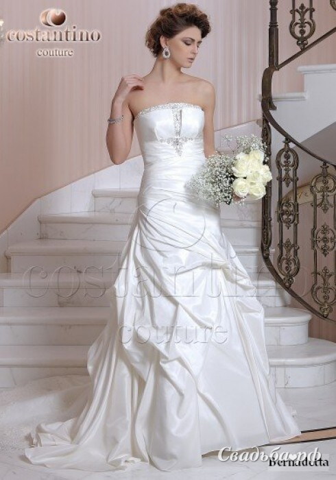 Роскошное платье, с красивым шлейфом расшитым кордовым кружевом.