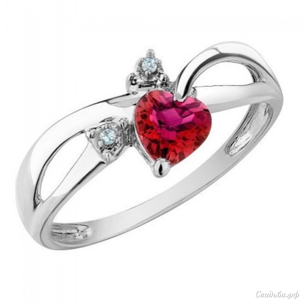 Очаровательное кольцо для помолвки украшено гранатовым сердечком и двумя небольшими бриллиантами.
