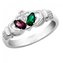 Небольшое кольцо для помолвки с тремя драгоценными камнями - одно из множества разновидностей Кладдаха (ирландское кольцо для предложения руки и сердца). В данной модели вместо традиционного сердечка используется вставка из изумруда и рубина огранки маркиз.