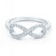 Стильное кольцо для помолвки в форме символа бесконечности щедро украшенное великолепными бриллиантами.