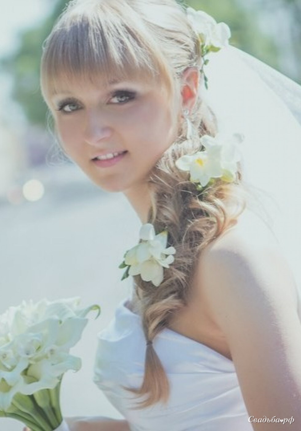 | C живыми цветами, с плетением, с фатой, с челкой | |