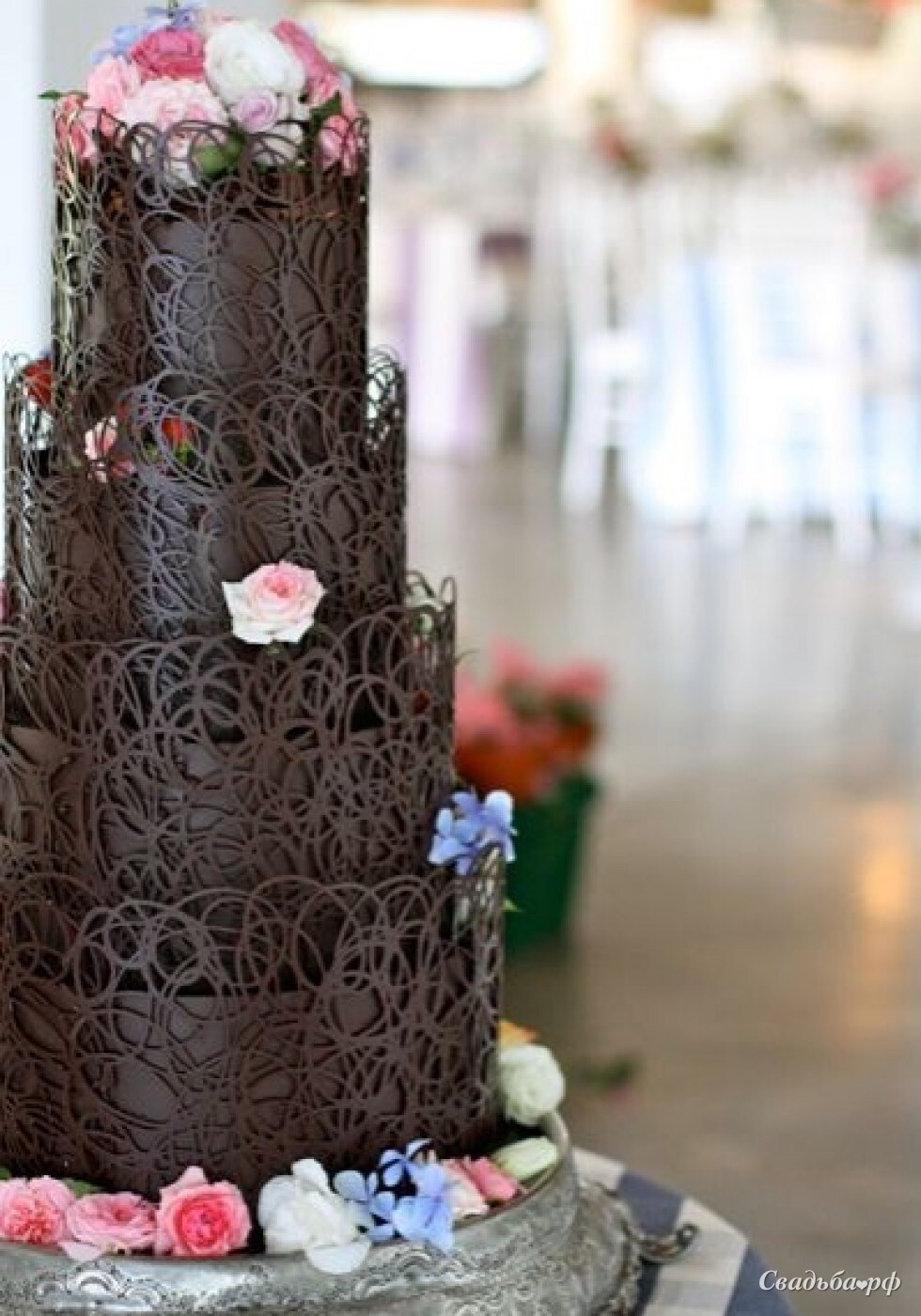 Свадебный торт «Шоколадное кружево» (Р113746)