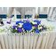 Композиция на президиум в бело-синих тонах из синей гортензии, орхидеи Ванда, белых роз, белых лизиантусов, орхидеи дендробиум с декоративной зеленью.