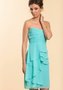 Лёгкое платьице от лучших американских модельеров выполнено из голубой ткани. Модель поражает своей воздушностью и романтичностью. Открытая зона декольте и сборки на груди привлекают внимание к бюсту. Завышенная талия подчеркнута широким поясом. Нежная юбочка с вертикальными воланами почти доходит до уровня колен. Свежий образ для стильной красавицы.