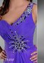 Фиолетовое вечернее платье из нежной ткани может похвастаться эффектными вставками на груди и единственной бретели. Сверкающие камни образуют затейливый узор, приковывающий к себе все взгляды окружающих. Лёгкие сборки драпировки зрительно увеличивают бюст. Модель смотрится стильно, торжественно и романтично. Вы будете неотразимы!