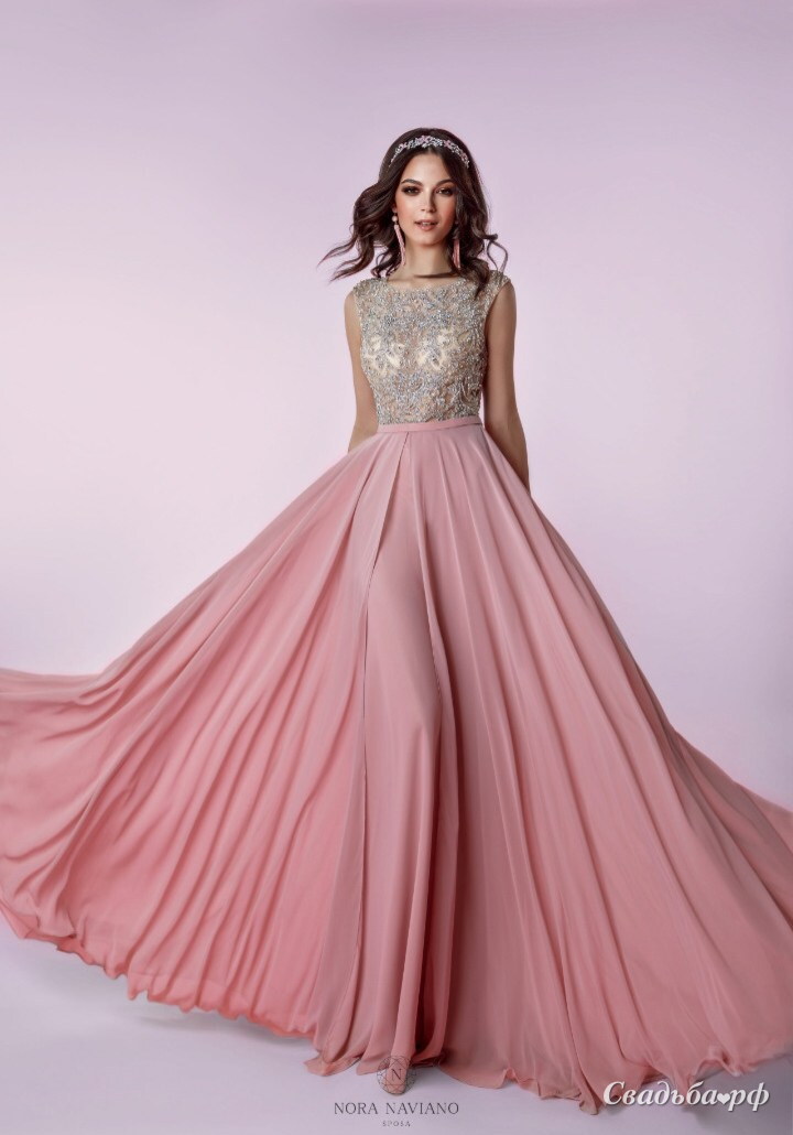 Красивое вечернее платье А-силуэта, линия декольте "лодочка". Юбка платья выполнена из легкого шифона, а роскошный росшив лифа придает этому вечернему наряду торжественности и помогают создать образ стильной и уверенной в себе девушки.