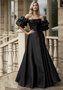 Стильное вечернее платье А-силуэта с объемными рукавами. Платье выполнено из восковой органзы черного цвета с матовым блеском.